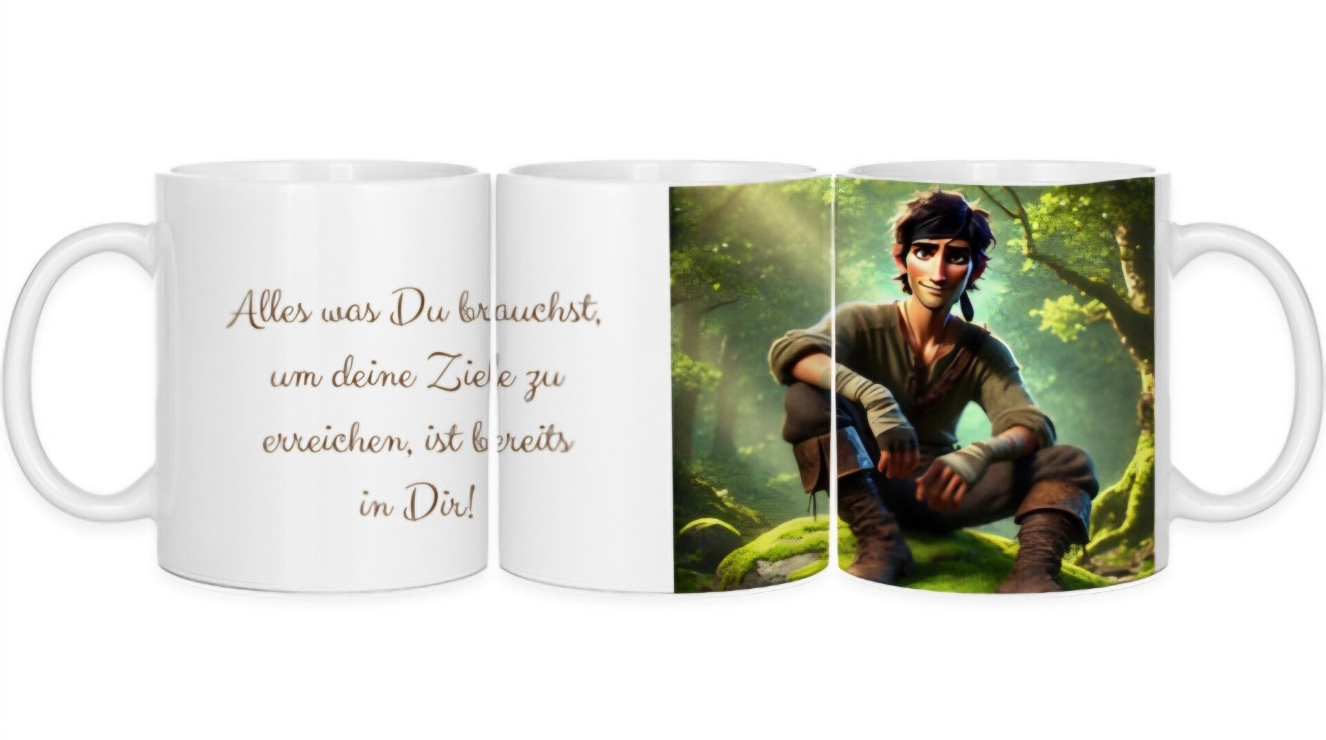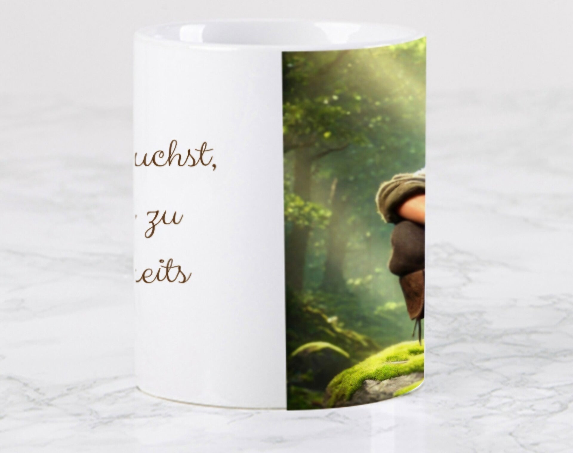 Eine Tasse mit Motiv & einem Mutmachspruch für positives Denken